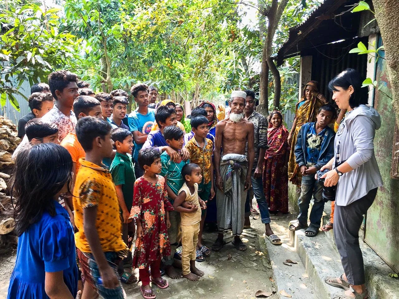 Strategy Session: Annie Tong reviews the strategy for conducting an afternoon photoshoot in a small village in the Patuakhali District of southern Bangladesh.