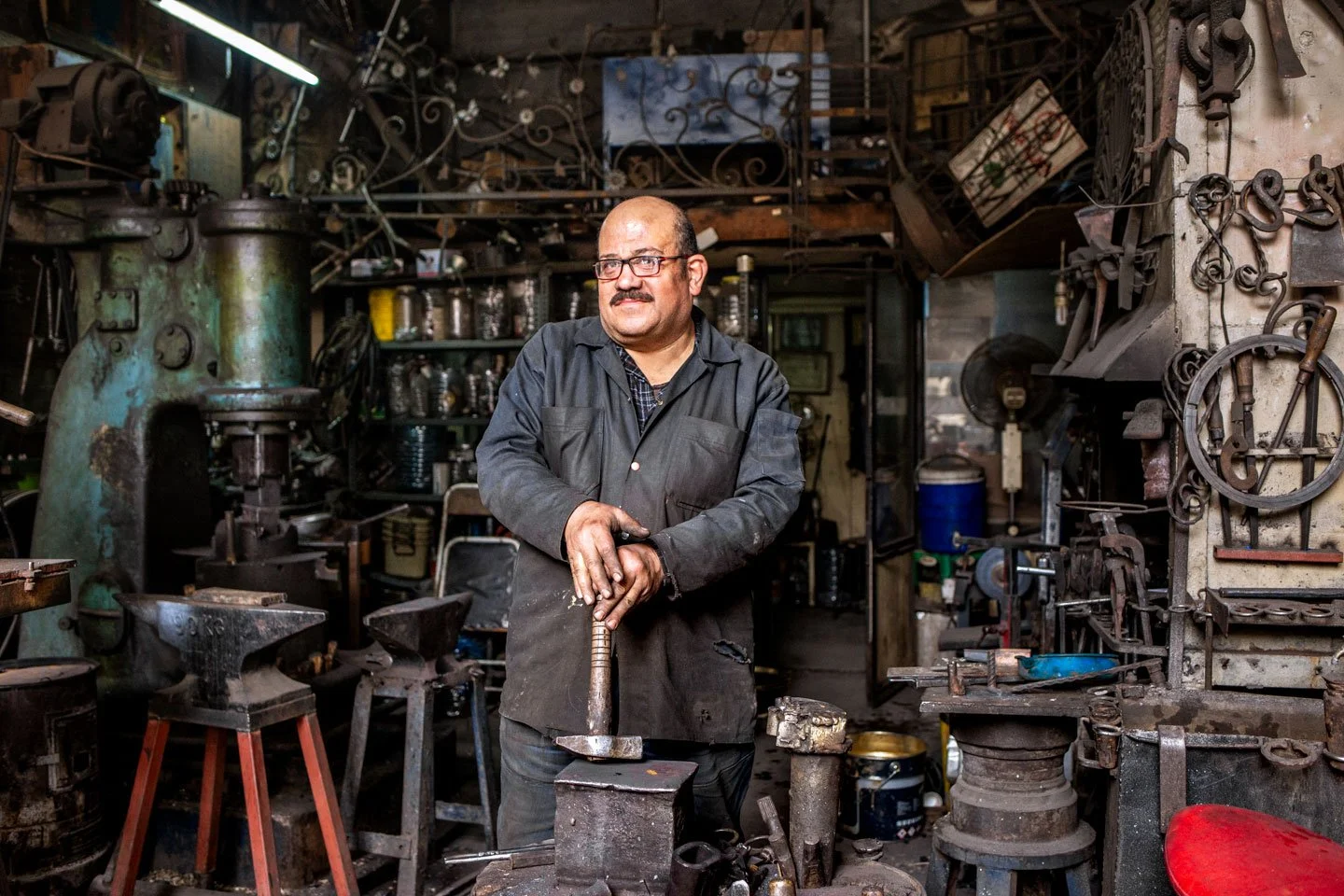 These are not the same grey coveralls his great-grandfather used to wear when he opened this metalwork shop a hundred years ago, but it feels like them.